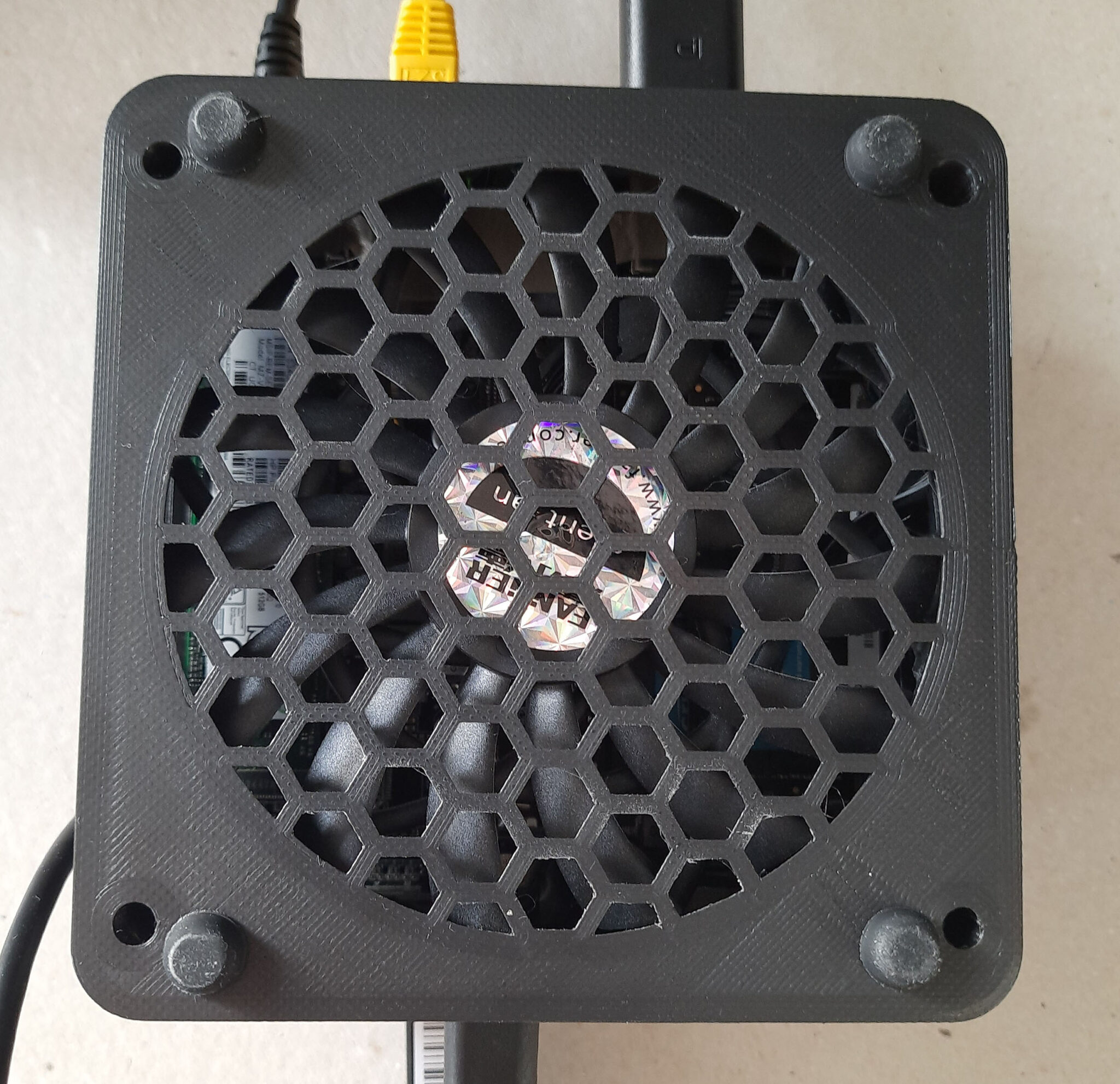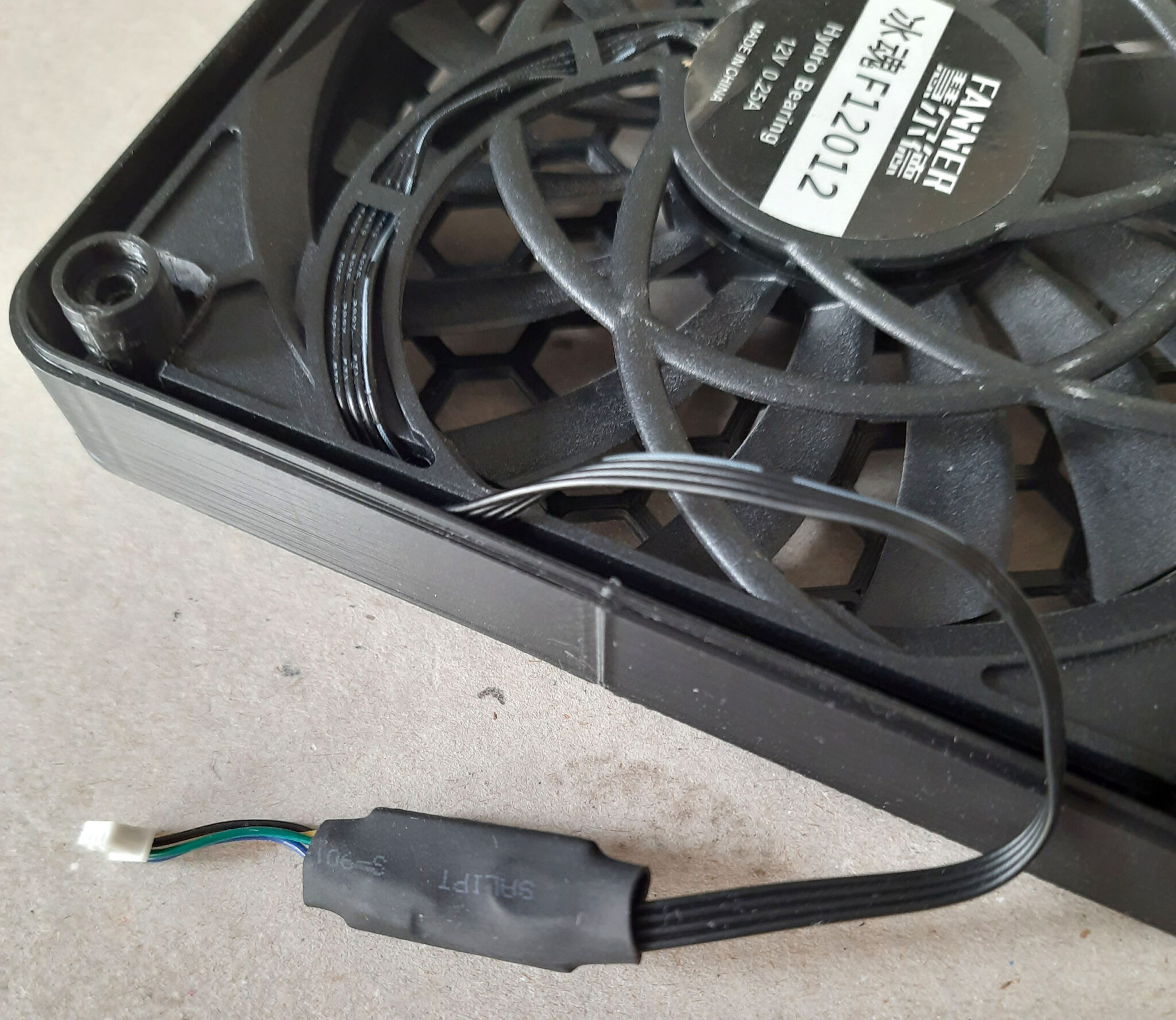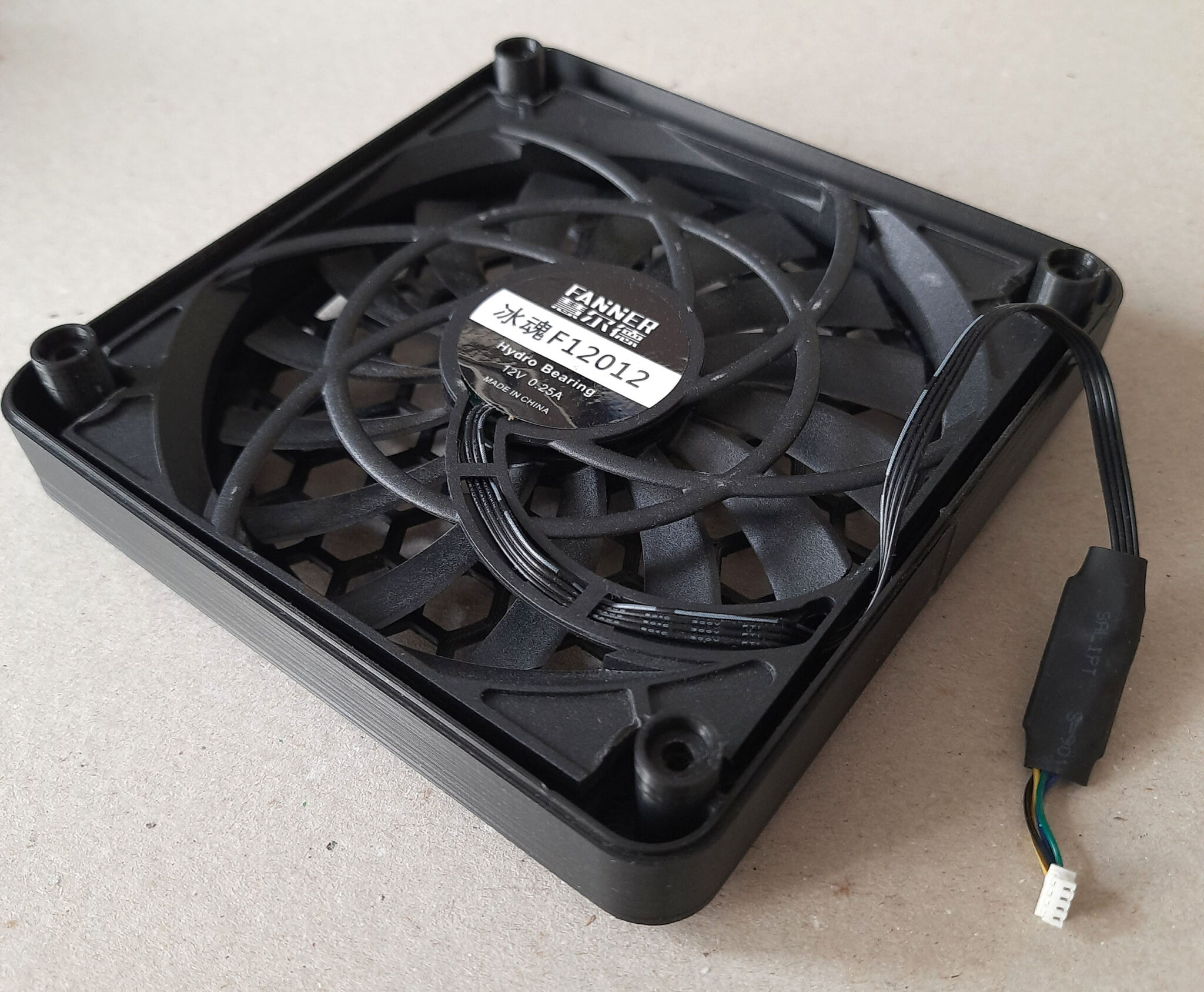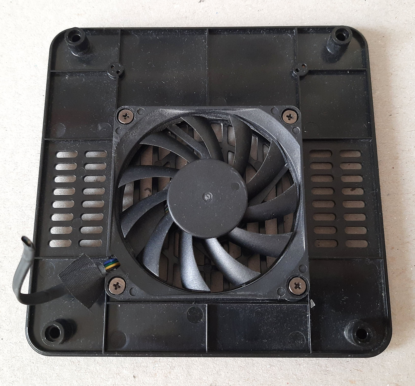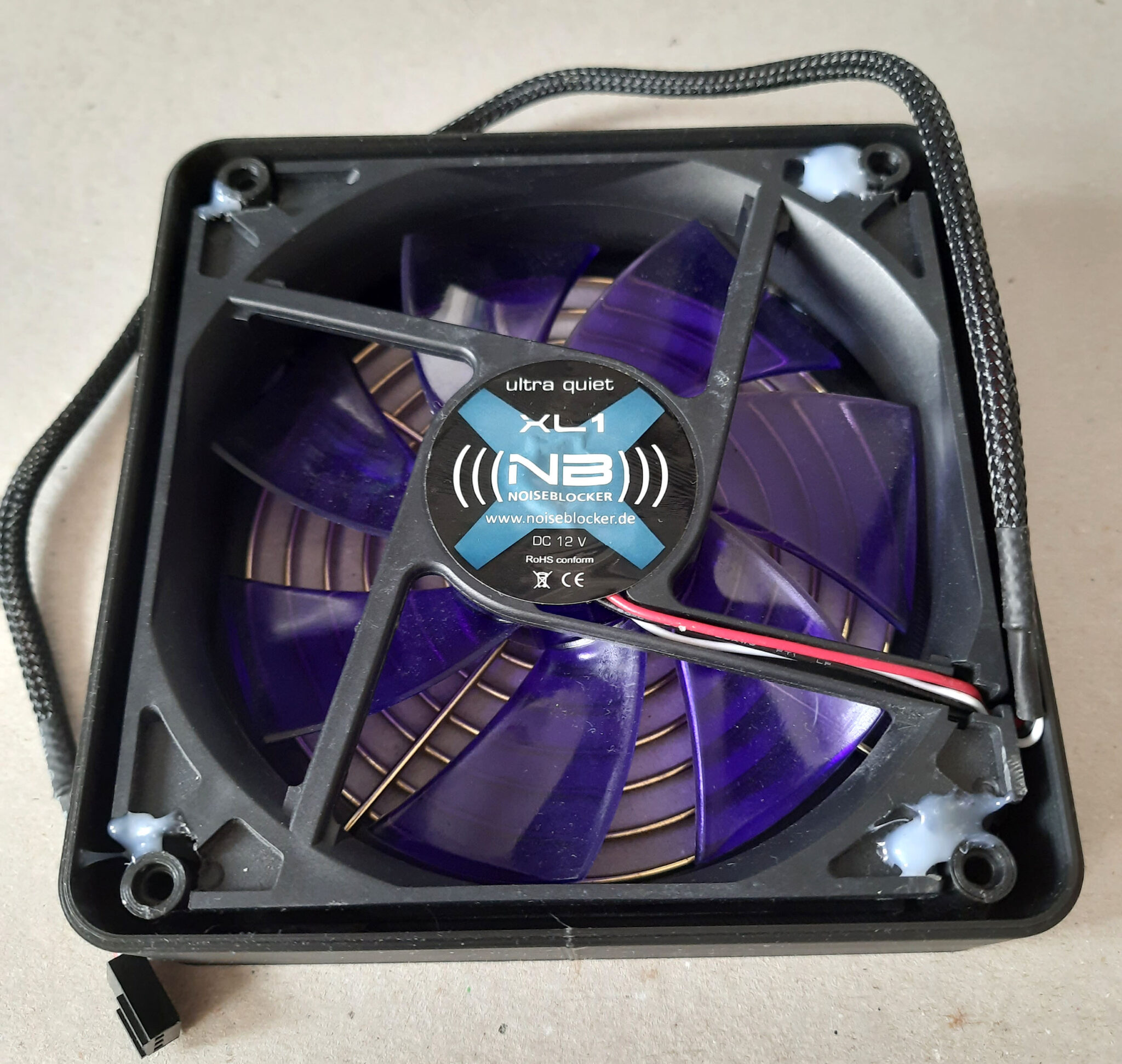 Der Austausch der unteren Abdeckung mit dem kleinen Lüfter gegen ein Gehäuse mit einem größeren Lüfter hat die Kühlleistung verbessert, da der Luftstrom stärker geworden ist. Auch das Betriebsgeräusch des Lüfters ist etwas leiser geworden.