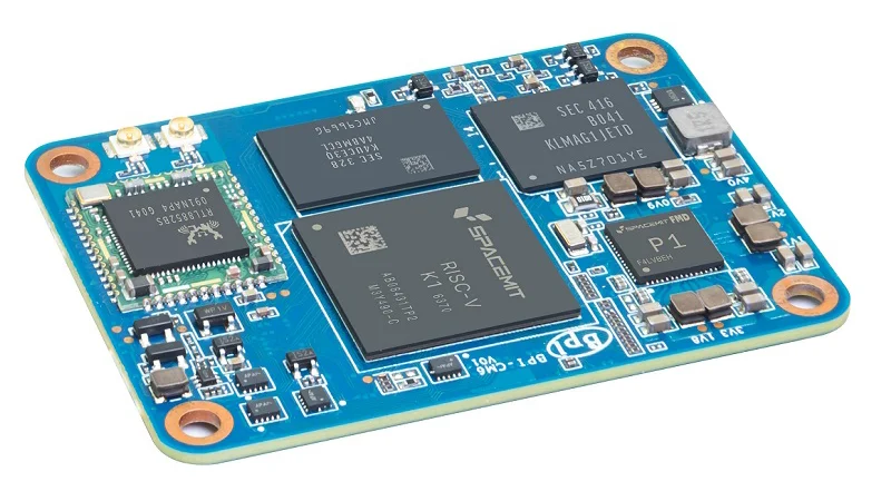 По форме, габаритам и расположению коннекторов новинка идентична Raspberry Pi CM4. Задействован чип SpacemiT K1, который объединяет восемь 64-битных ядер RISC-V, графический блок Imagination BXE-2-32 с поддержкой OpenCL 3.0, OpenGL ES3.2 и Vulkan 1.3, а также нейропроцессорный узел (NPU) с производительностью до 2 TOPS для ускорения ИИ-операций.