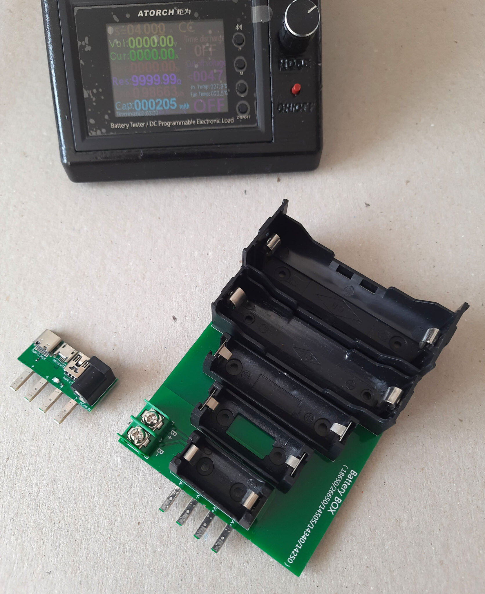 Ein kleiner Fotobericht über den universellen Tester zur Kapazitätsmessung von Lithium-Akkus, der auch als Netzteil-Tester und elektronische Last verwendet werden kann. Im Handel sieht dieses Gerät etwas anders aus, doch für eine komfortablere Nutzung entwickeln Enthusiasten verschiedene Gehäusevarianten. (Der Grund dafür ist, dass man die Leistung des Geräts auf bis zu 600 W erhöhen kann, indem man an den Seiten der Hauptplatine drei zusätzliche Module anbringt – jedes Modul fügt weitere 150 W Leistung hinzu). Ich selbst plane momentan keine Leistungserweiterung und habe im Netz 🔗hier ein schönes und kompaktes 3D-Gehäusemodell gefunden. Allerdings gibt es eine überarbeitete Version dieses Gehäuses mit einem zusätzlichen Encoder und einem Taster (diese Nachrüstung ist in der Konstruktion des Geräts vorgesehen). Zwar lassen sich auch die Standardtasten verwenden, jedoch erhöht die Nachrüstung den Bedienkomfort. Das Gehäuse habe ich selbst auf meinem 3D-Drucker Artillery Hornet gefertigt und anschließend schwarz lackiert. (Dieses 3D-Modell ist bisher das aufwendigste und längste Druckprojekt gewesen – die Druckzeit betrug etwa 15 Stunden ohne Unterbrechung).